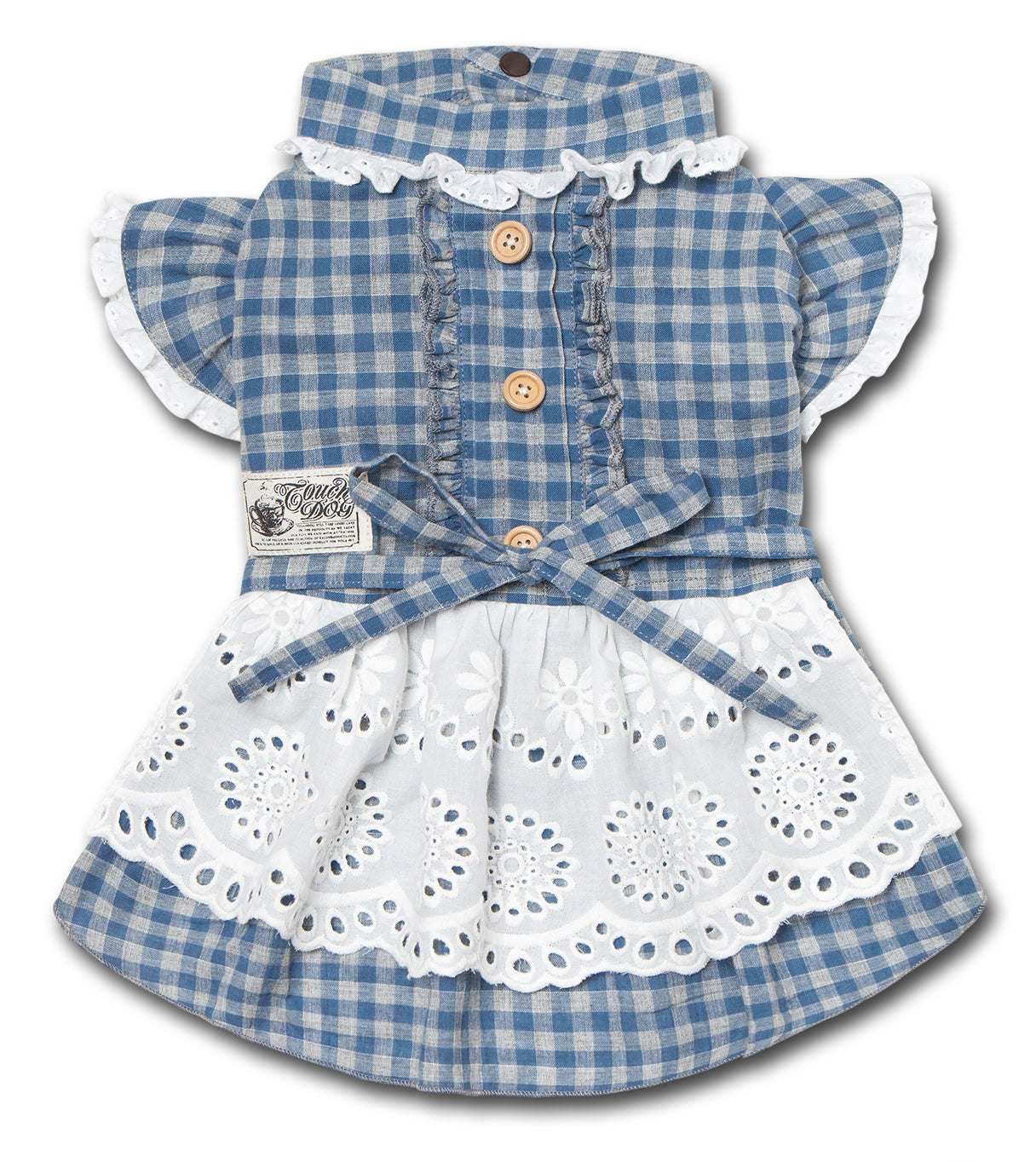 The Touchdog 'I love Poochi' Classical Fashion Designer Plaid Dog Dress is an emblematic-of-its-age vintage designer dog dress that is eloquently pieced together. This beautifully crafted dress features retro ruffles along the sleeves and collar areas with accented buttoned trims and a transparent tablecloth stitched layering by the back-side with a trendy adjustable bow for a custom fit around the chest or waist areas. Howl Grand is this masterpiece! Available in Multiple Sizes and Colors.